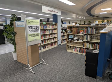 We operate the Friends Bookstore, which raises more than $18,000 each year to fund our mission and reach our goal of helping the library.